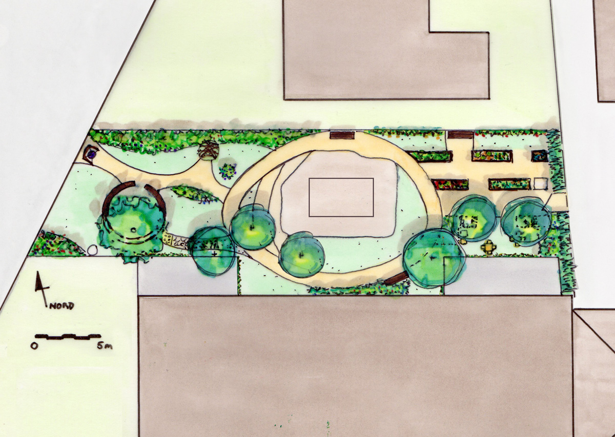 Camsp de Chartres : Esquisse du jardin. (Etude en cours).